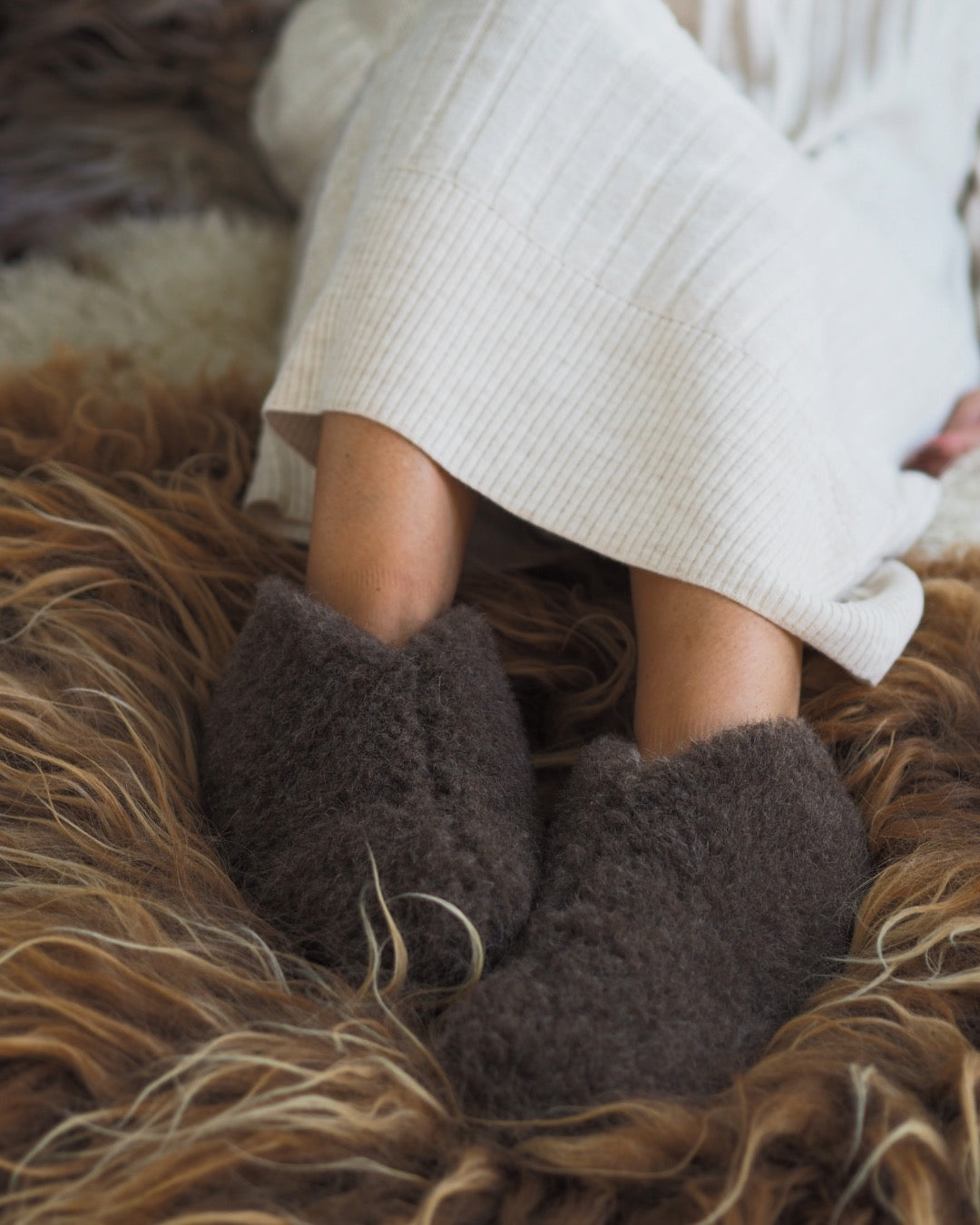 Våre ulltøfler er laget av 100 % merinoull, som naturlig regulerer temperaturen og holder føttene dine både varme og tørre. Disse varme tofflene er synonymt med kos og velvære. Uansett om du vil holde føttene varme på en kald vinterdag eller leter etter komfortable sko for innendørs bruk, er ulltoffler det åpenbare valget. Finn det perfekte paret i dag og overrask med en gave som både varmer og skjemmer bort!