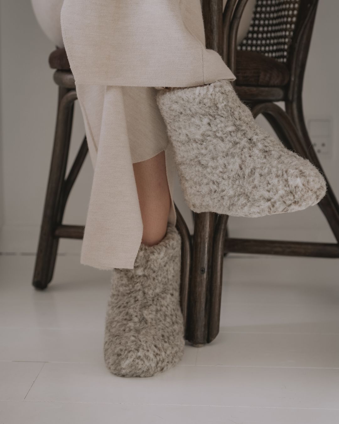 De myke ulltøflene kan håndvaskes med ullvaskemiddel i kaldt vann. Husk å ikke vri ulltøflene tørre etter endt vask, men heller presse eller rulle dem i et håndkle, og la dem deretter lufttørke. Imidlertid anbefaler vi bare å vaske ulltøflene hvis det er helt nødvendig.