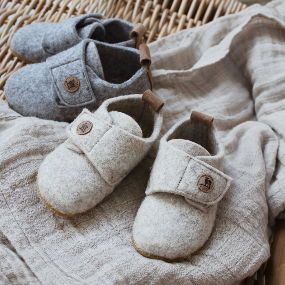 Oeko-Tex-sertifisert ullfilt med borrelås og sklisikker gummisåle