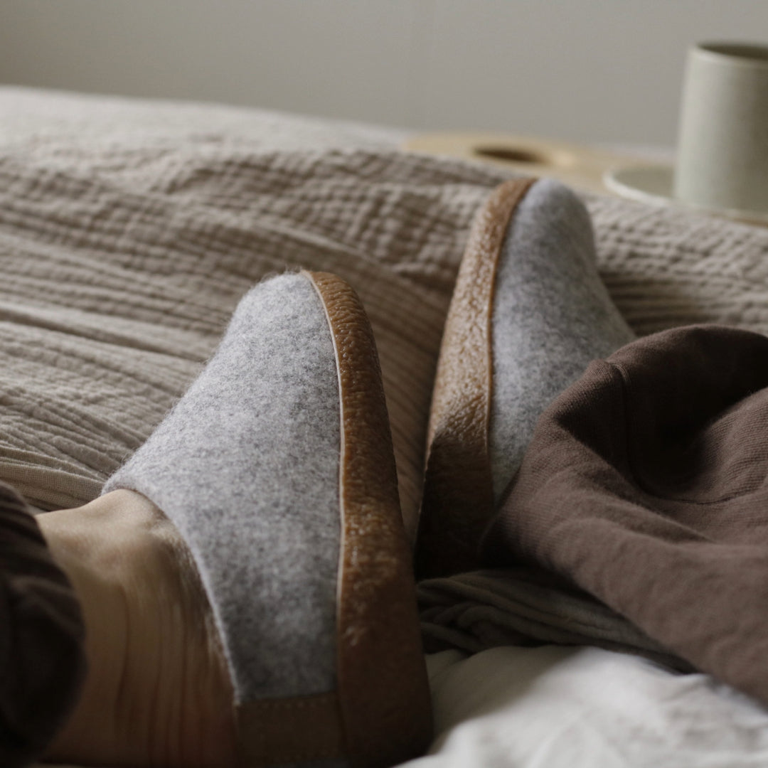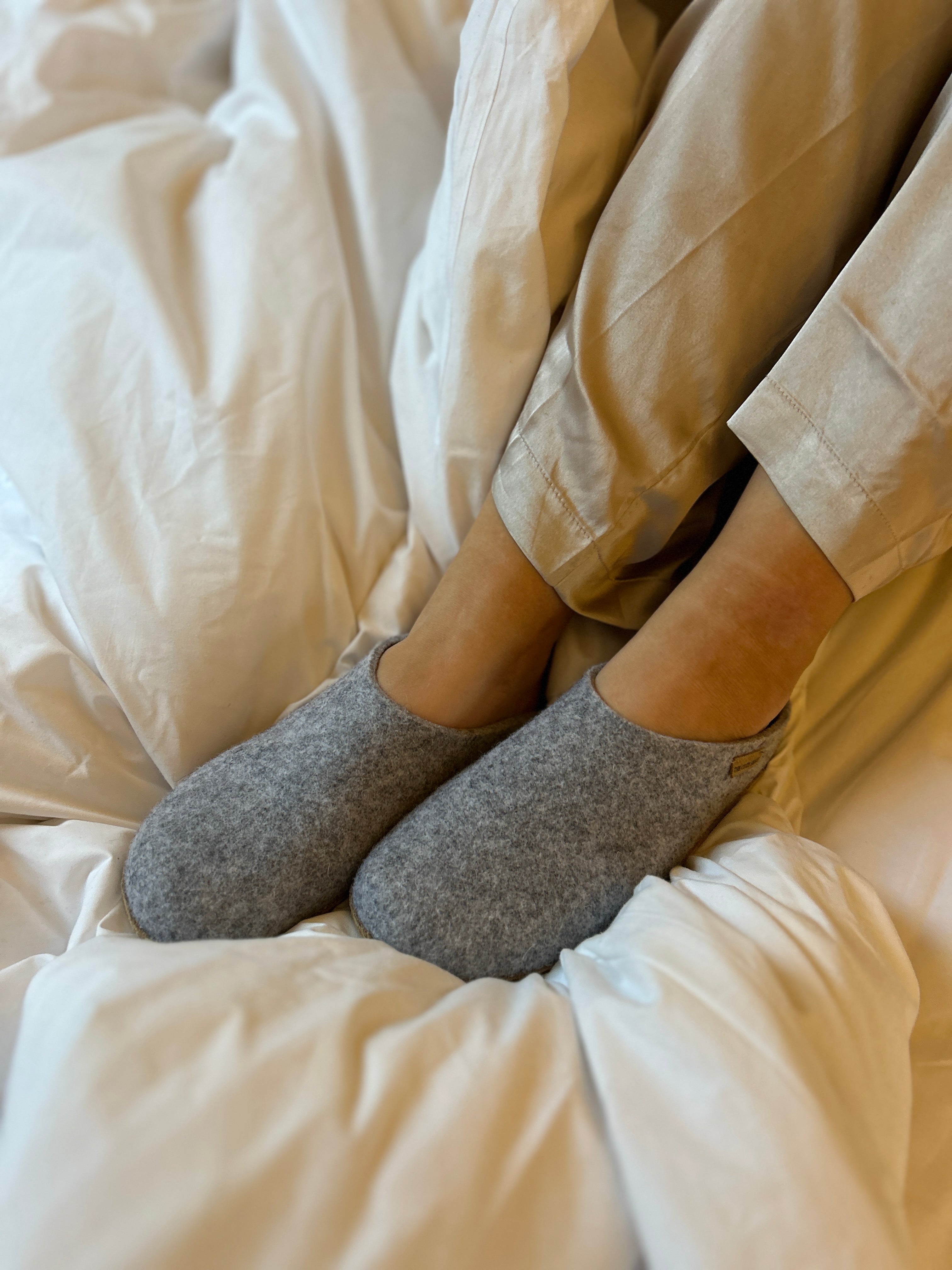 OEKO-TEX-sertifiserte luksuriøse tøfler i italiensk ullfilt