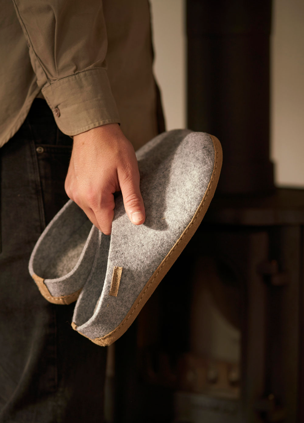 Med en enkel og tidløs skandinavisk design passer våre luksuriøse filttøfler perfekt inn i ethvert hjem, uavhengig av stil. Denne modellen har en veldig lett og elegant semsket såle, laget av organisk kvalitetsskinn. Tøflene er ekstremt behagelige å ha på seg og er også temperaturregulerende, noe som betyr at de kan brukes hele året - ikke bare når det er kaldt ute.