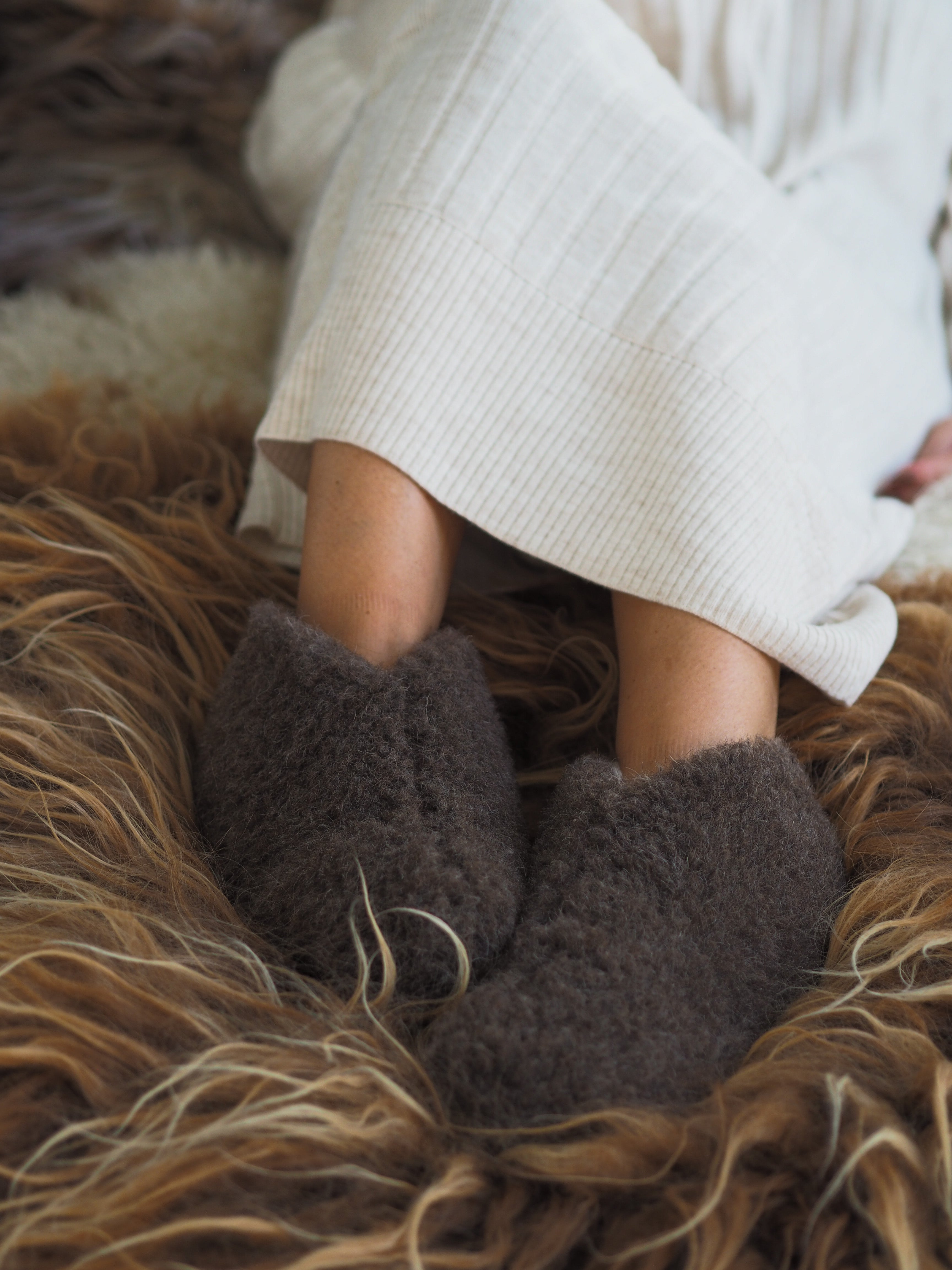 Tøfler laget av 100% myk og kløfri økologisk merinoull